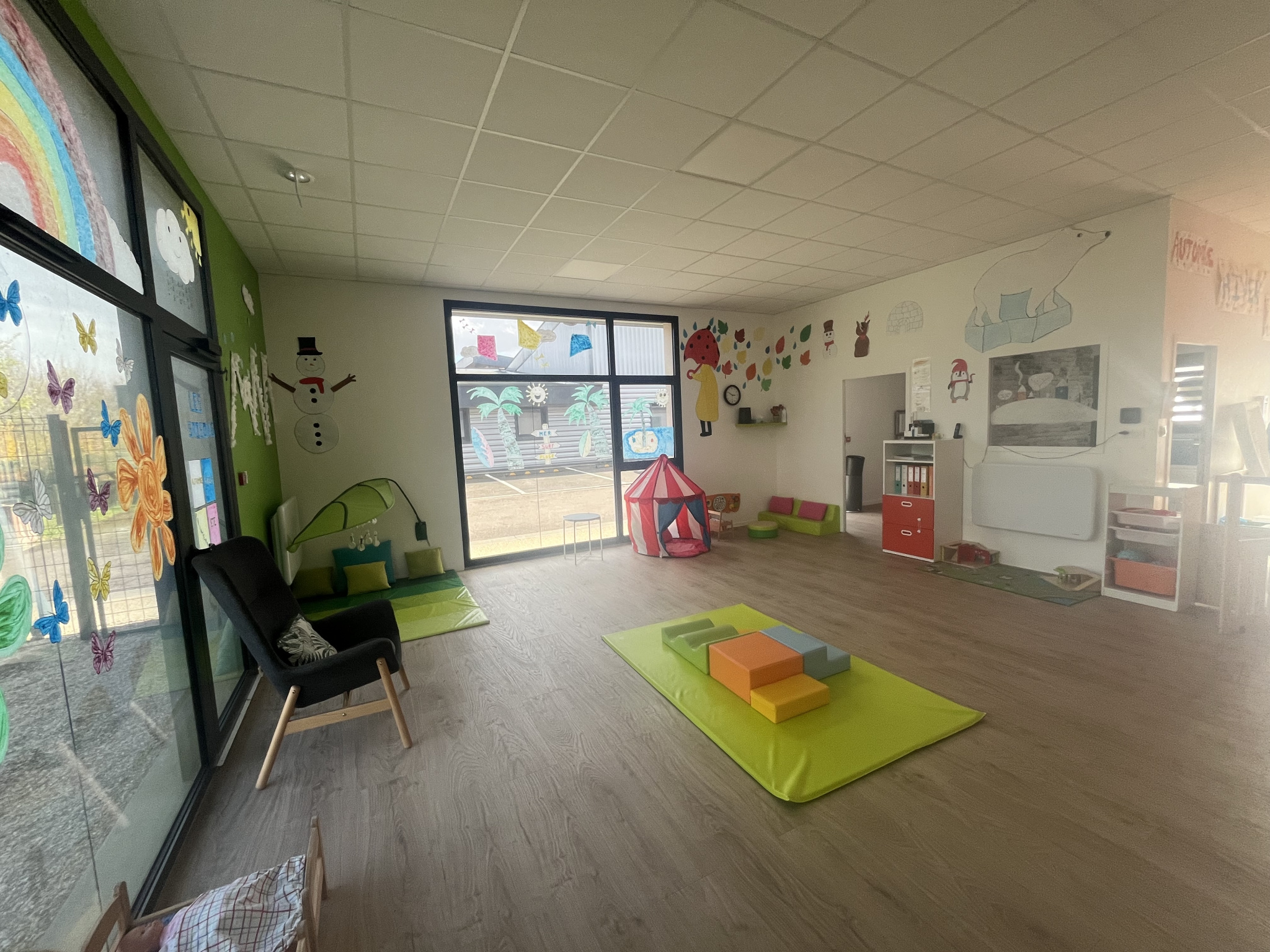 Ce logement est composé d'une entrée, d'une grande salle, de 3/4 bureaux, de deux pièces d'eau, d'un jardin de 100 m² et d'un sanitaire.